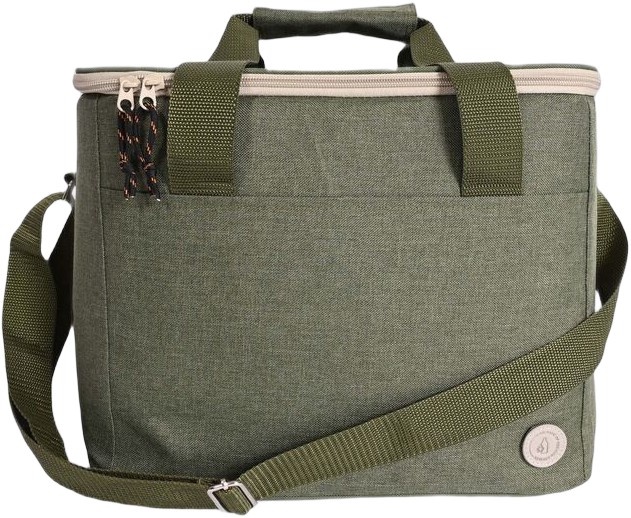 Rummelig, stilfuld og sporty køletaske i grønt rPET-materiale. Udsøgte detaljer i beige og sort. Praktisk med både håndtag og justerbar skulderrem. Rummer 20 liter.